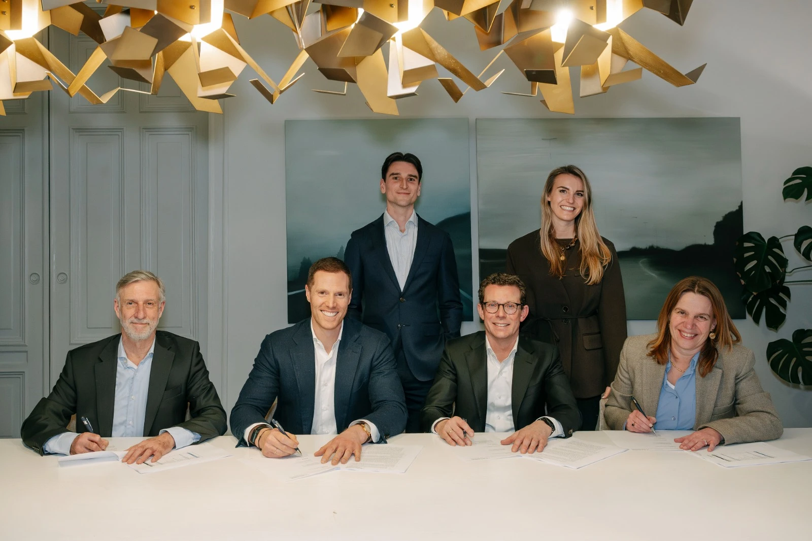 v.l.n.r.: Allen Pheiffer - CFO Olympia, Dimitri Yocarini - CEO Olympia, Thomas Blaasse, Rense Jonk, Esmee Katoen en Désirée Theyse